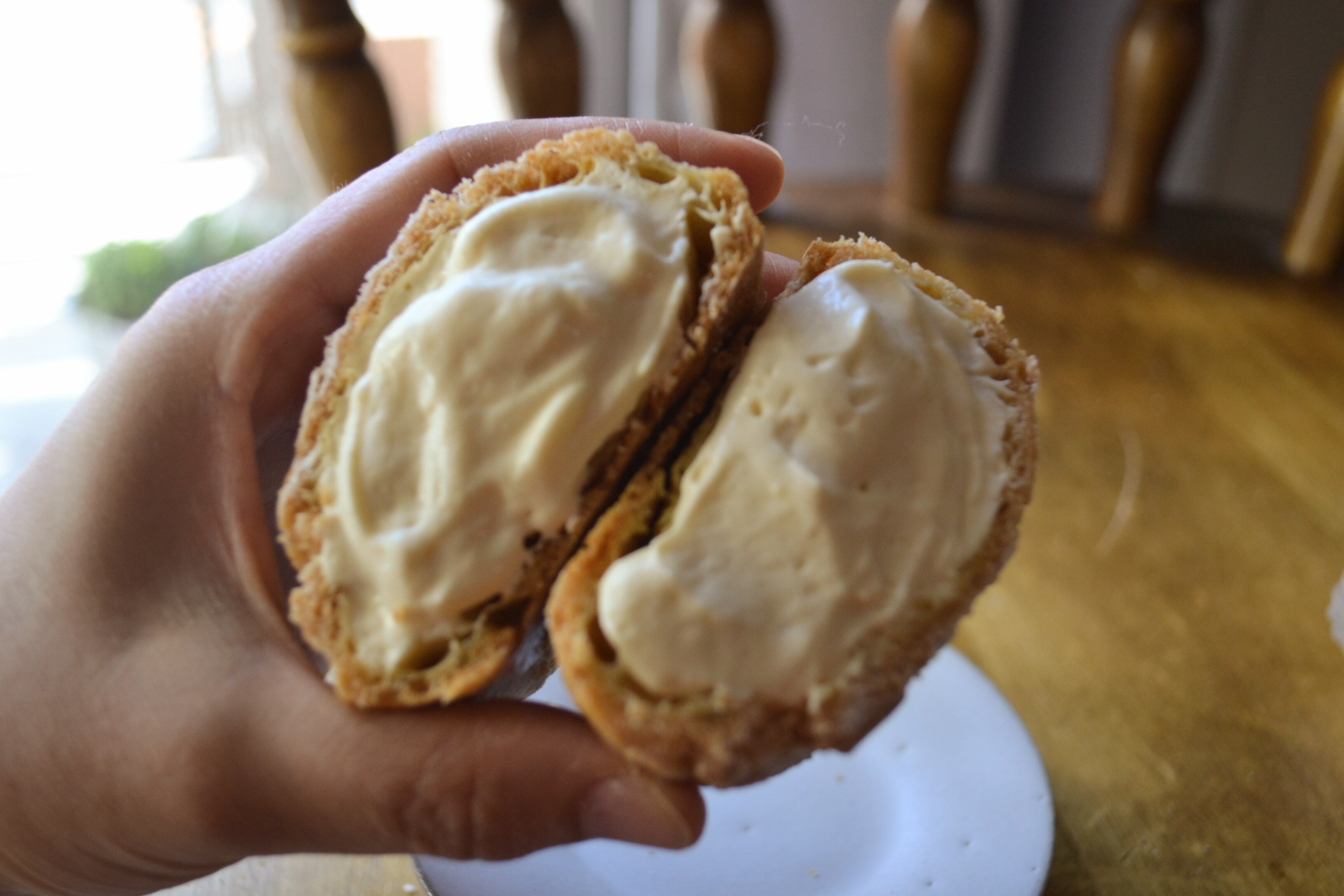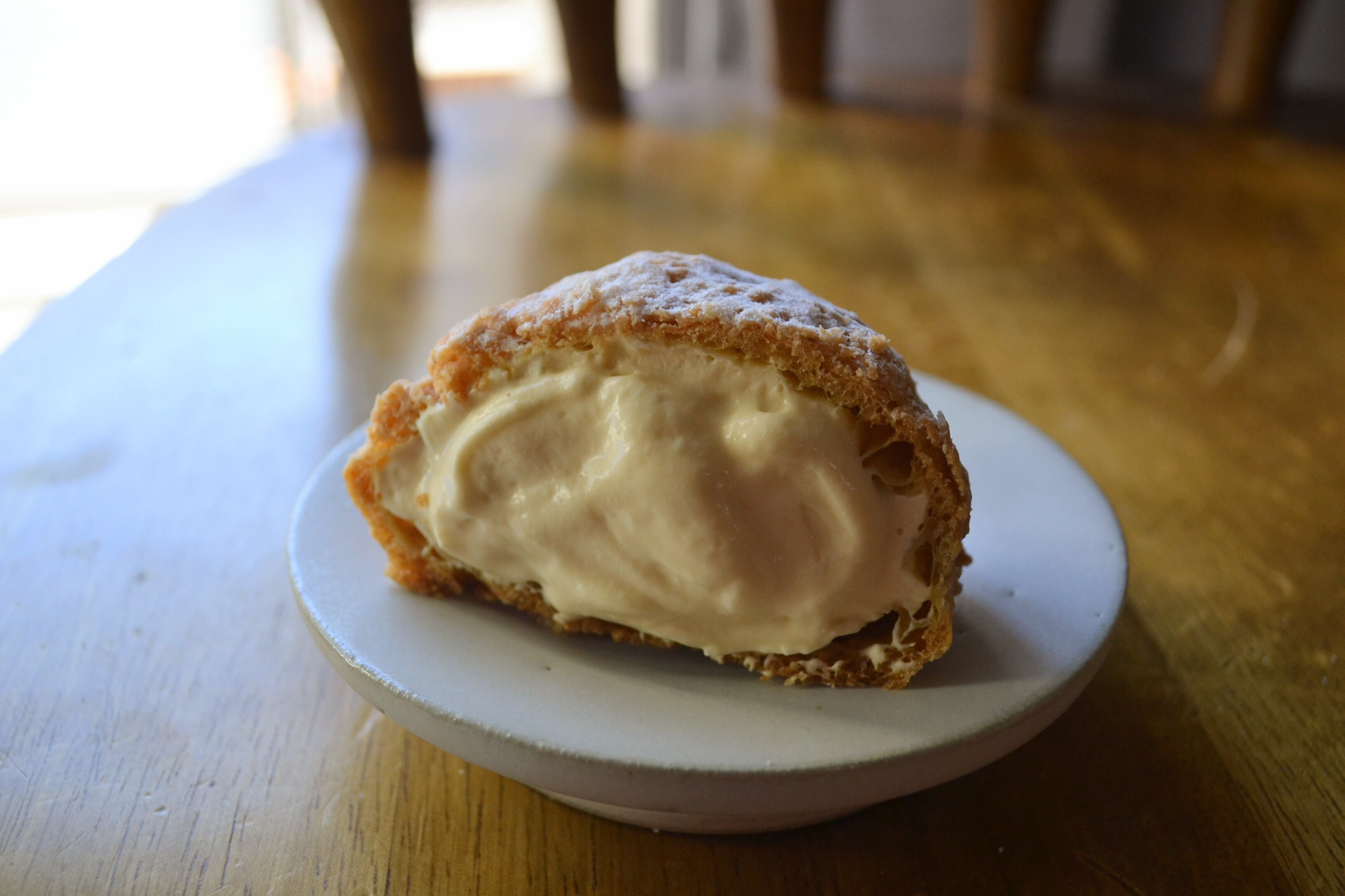 米粉と国産の白高きび粉を使用した香ばしい生地に、ガリガリのクッキー生地を乗せて焼き上げ、濃厚米粉カスタードと生クリームを混ぜたクリームをたっぷり中に詰めた、この時期限定の絶品シュークリームです。